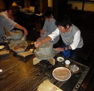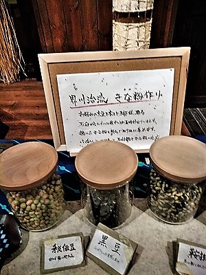 ![]() 食後には黄な粉作り体験! |