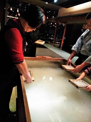 ![]() まずハガキ大の紙漉体験(人数制限があるので素早く予約) |
