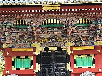 ![]() 「日暮の門」ともよばれ、故事逸話や子供の遊び、聖人賢人など500以上の彫刻がほどこされています。 |