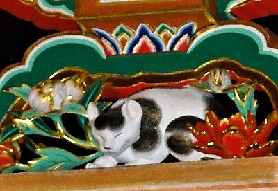 ![]() 眠り猫 【国宝】 左甚五郎作と伝えられています。 牡丹の花に囲まれ日の光を浴び、うたたねをしているところから「日光」に因んで彫られたとも! |