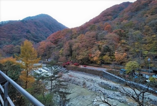 ![]() ホテルの門の前 鬼怒川の両サイドの紅葉?を眺め陽明門へ |