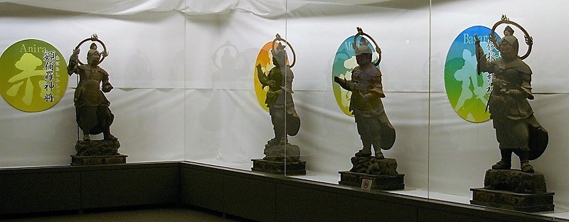 ![]() 十二神将は、薬師如来の十二の大願に応じて、それぞれが昼夜の 十二の時、十二の月、または十二の方角を守るという。そのため十二支が配当される。 |