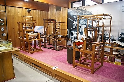 ![]() はた織機や古い写真が展示室にありました |