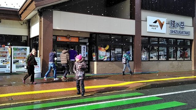 ![]() 10:15 賤ヶ岳SAでは雪が舞う! |