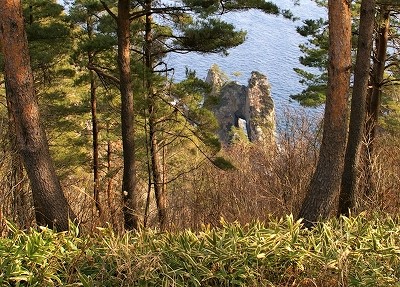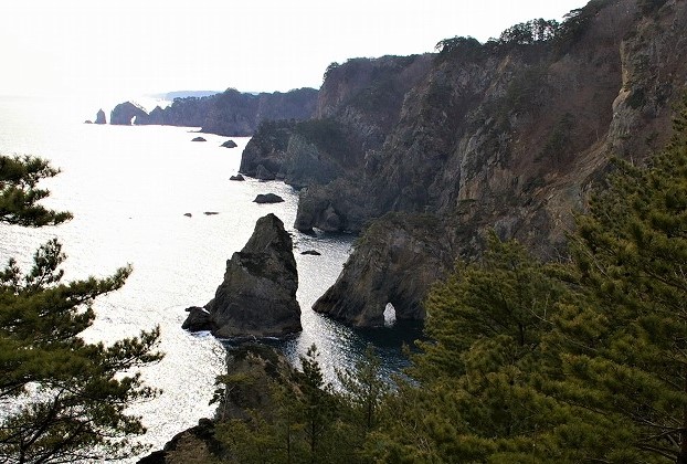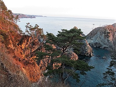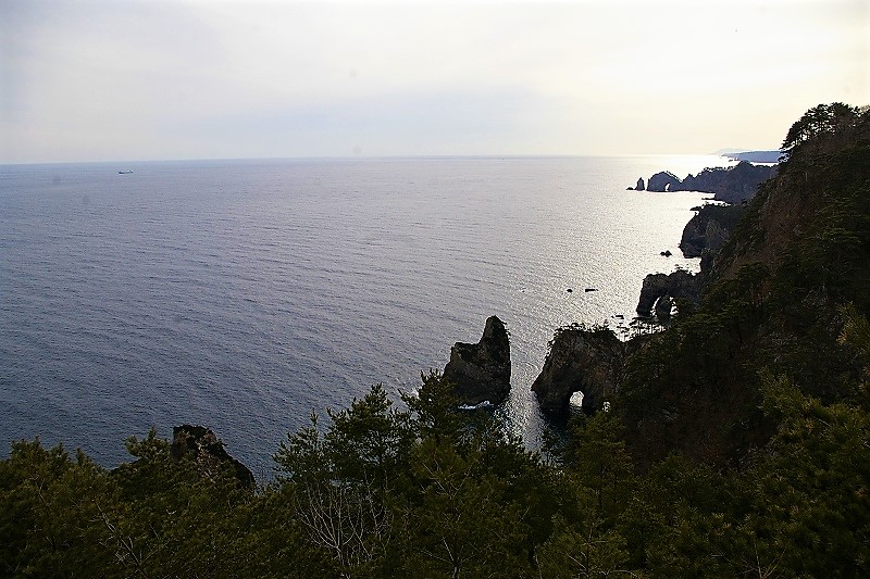 ![]() 高さ約200mの岩山が続く北山崎を一望 |