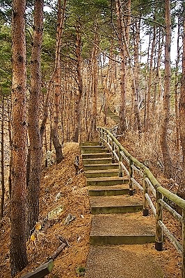 ![]() 第一から第二・第三展望台への波打ち際までは736段ある階段が続く。 |