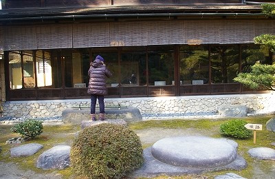 ![]() 丸石は庭を作る時に庭師の長が座り指図した場所 右)『お茶屋』 |