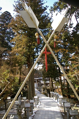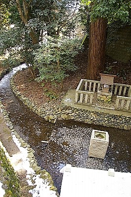 右)節分の豆を年齢の数だけ太鼓橋より御手洗川に投げ落とし、厄除を願う!