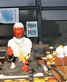 ![]() 温かい本堂の縁側で日向ぼっこする老人二人・・・のどかな善光寺の弘法大師像とびんずるさん |