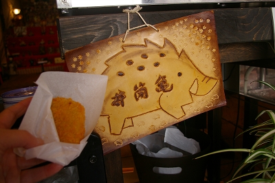 ![]() イノシシの肉が入ったコロッケ(保育園の畑がイノシシに荒らされたそうです) |
