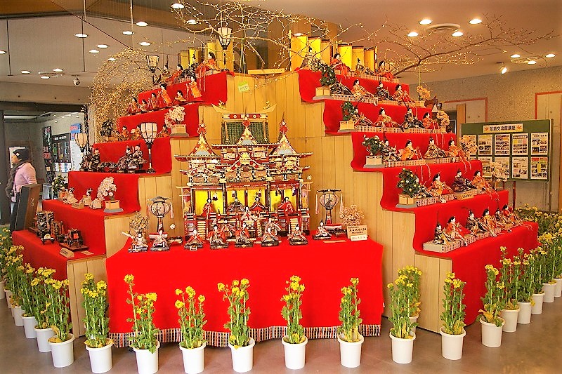 ![]() 足助の古い町並みに並ぶ民家や商家に古くから伝わるおひなさんや土びな(土人形)を玄関先や店内に華やかに飾る |