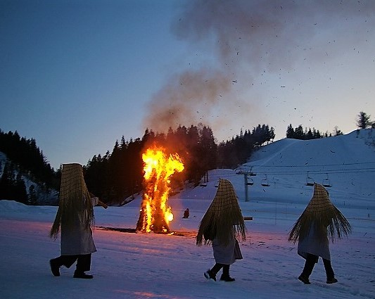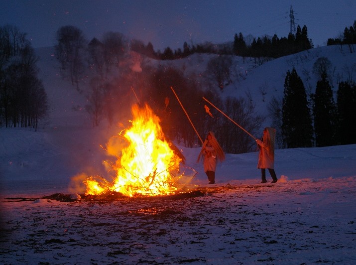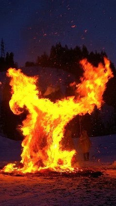 ![]() どんど焼きの炎が夜空を焦がし無病息災を祈る! |