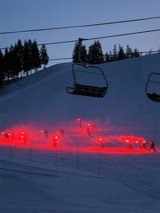 ![]() 6:10松明を掲げたスキーの滑降・・・転んでいた人が! |
