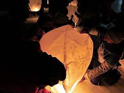 ![]() 6:25前半150名 6:35ツーリズム後半150名 2班に分かれての天燈上げです |
