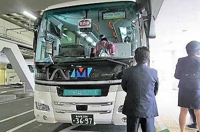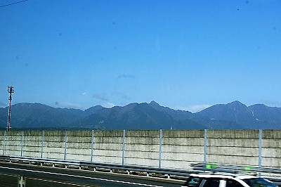 ![]() 名鉄バスセンターを出て鈴鹿山脈(右に御在所)を眺め走る |