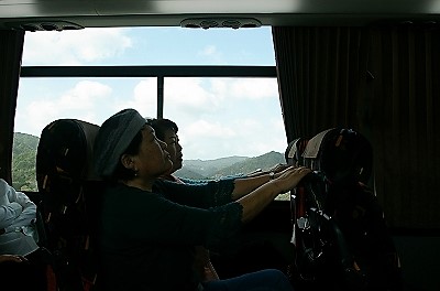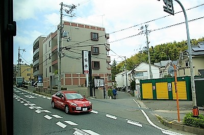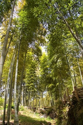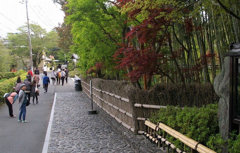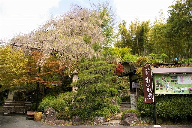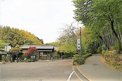 ![]() 極細の道に大型バスが入っていきます。 竹林に覆われた料亭筍亭に到着 |