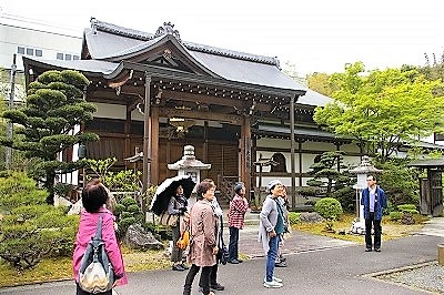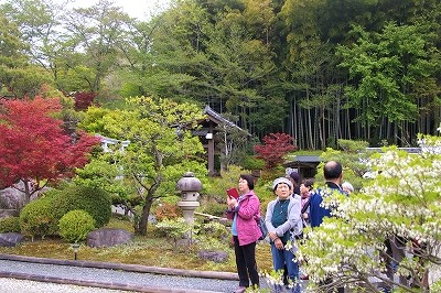 ![]() 高野山真言宗天鏡院(竹と花の寺)の前から、お庭の案内が始まりました。 |