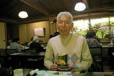 ![]() ![]() ![]() ![]() ![]() 筍ずくしの会席料理を頂く(バスツアーの1/3は料理代) |