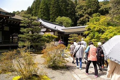 ![]() 写経を済ませ庭園に向かいます |