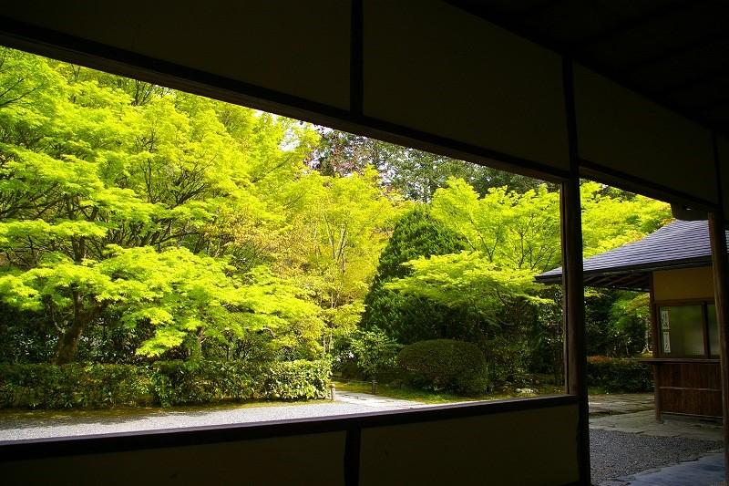 ![]() 苔寺の庭園を右に見て・・・ |