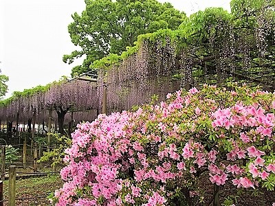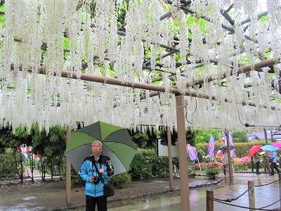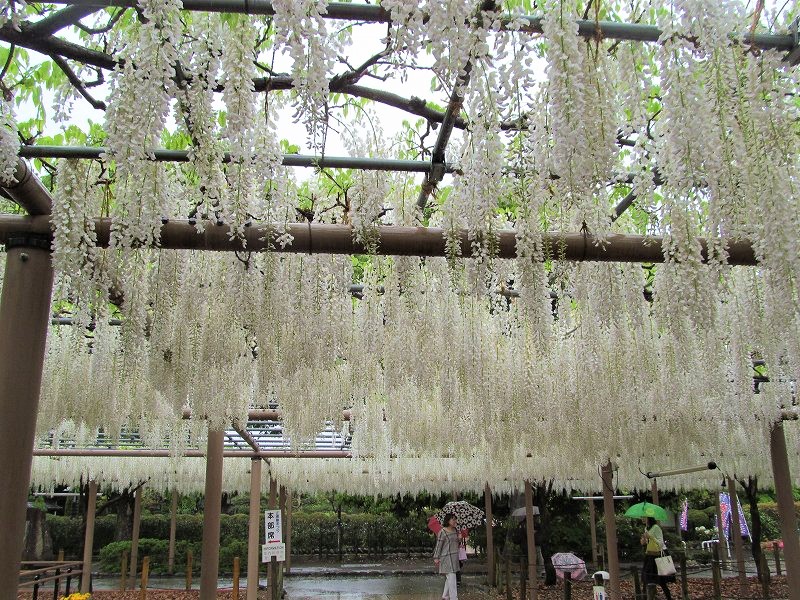 ![]() 12種類の藤が咲き誇る。 藤の甘い香りがかすかに漂う雨の鑑賞になりました。 |