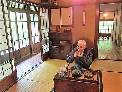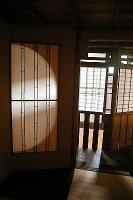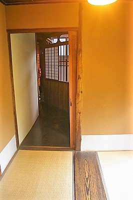 ![]() からくり屋敷のような増築を繰りかえした木造3階建 わざと質素に仕上げた幅の狭い床の間↑ |