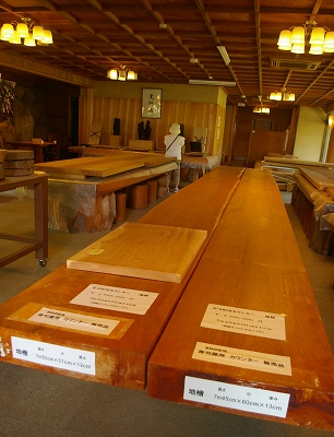 ![]() 「木の資料館」と日本建築の「豊寿庵」 樹齢300年生:180万円(7m50cm・57cm・12cm)の寿司屋用のカウンターを販売していました |