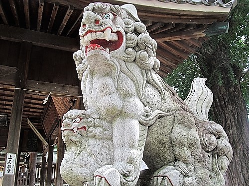![]() 子供を抱いた狛犬 |