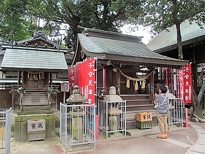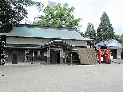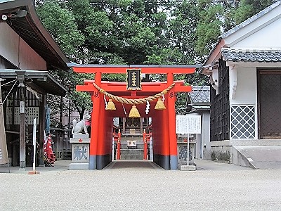 ![]() 広い境内の社務所の横には子守稲荷社 |