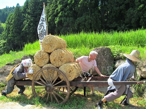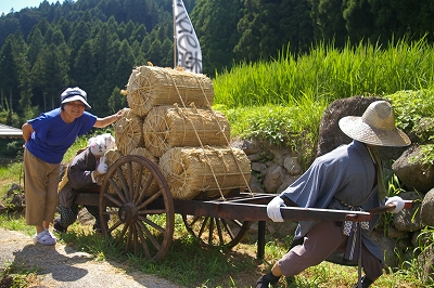 ![]() 苦しそうに大八車を引くのを見て、思わず手伝いました。 |
