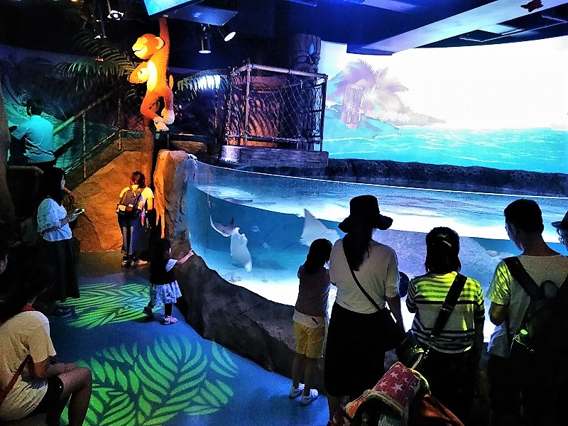 ![]() いろいろなエイが暮らす熱帯の海! この後ショーが始まったが? |