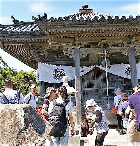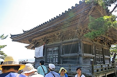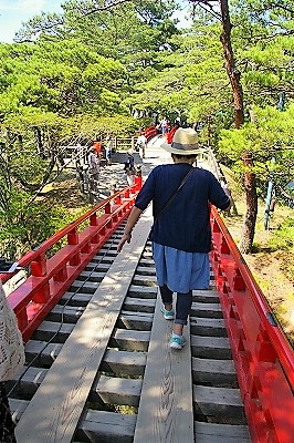 ![]() 現在の堂へ渡るすかし橋は、縦板が2枚しつらえられているが、もともとこの板はなく、はしご状であった。 はしご状の板を渡って見たら、海水が見えスリルがありますよ! |