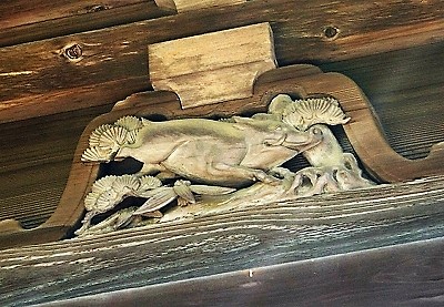 ![]() 五大堂の周りに十二支が彫られていて、自分の干支イノシシに手を合わせ願いを込める。 |
