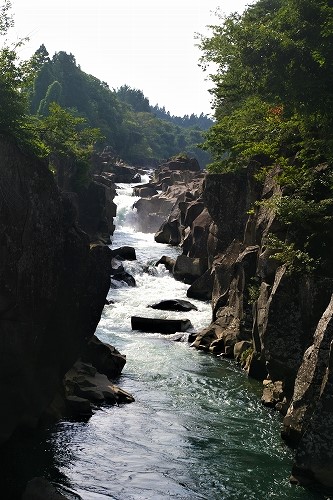 ![]() 『厳美峡』 伊達政宗が日本三景の松島と並べ、「松島と厳美がわが領地の二大景勝地なり」と称賛した。 |