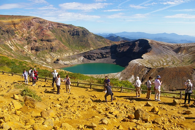 ![]() 御釜 天候や太陽光で湖面の色が変わるため”五色湖”とも呼ばれる蔵王五色岳にある美しい火山湖です。 |