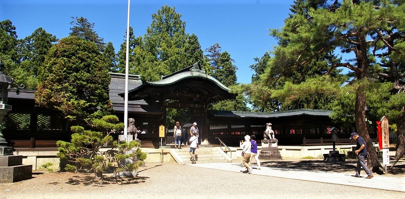 ![]() 上杉謙信、上杉 鷹山を祭神として、米沢城本丸跡に建立。 明治35年に別格官幣社(べっかくかんぺいしゃ=明治政府が定めた神社) |