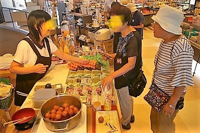 ![]() 山形名産玉こんにゃくを試食してから昼食会場へ移動 |