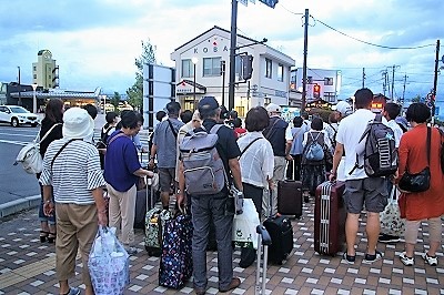 ![]() 18:15 長いバスの旅も無事塩尻駅まで戻りました。 手には土産物がしっかり増えています! |