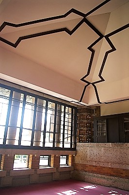 ![]() 大谷石には幾何学模様の彫刻を施し、レンガには櫛目を入れて、柔らかで華麗な外観を現出している。 |