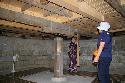 ![]() 舞台の天井から雪などを降らせる穴です 舞台の回転は人力でやっていた初期 |