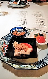 ![]() あも栗の試食がお茶と一緒に出てきました |