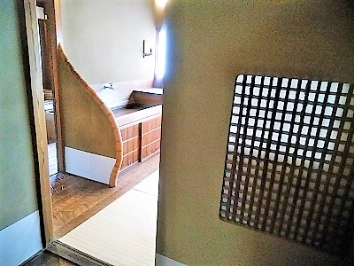 ![]() 西園寺公望別邸さいおんじきんもち『座魚荘』 随所に竹が使われ、欄間や玄関、取次ぎが特にしゃれている。 |