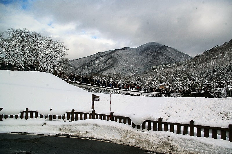 ![]() 白川郷のせせらぎ駐車場から見た「であい橋」の渋滞? 展望台には行く時間がありません |