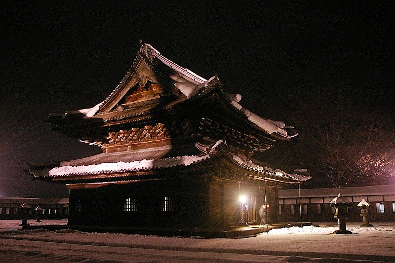 ![]() 『仏殿』の屋根は金沢城石川門でしか見る事の出来ない「鉛板」で葺かれています いざと言う時に鉄砲の玉にする目的がありました。 |