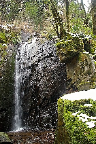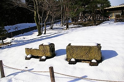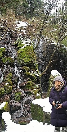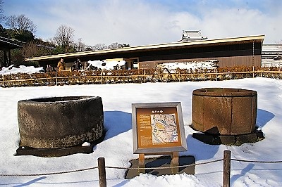 ![]() 漆喰とナマコ塀と雪の白さがまぶしい! 集合場所の階段でまた一人転んだ! |