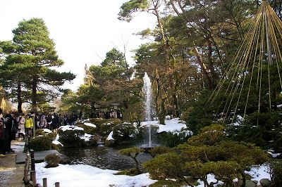 ![]() 『兼六園』桂坂口料金所 日本で最初にできた噴水。霞ヶ池の水圧だけで約3.5m上がっています。 |
