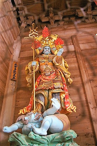 ![]() 山門の両側には仏教の守護神である四天王 これは北方多門天王 |