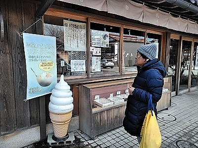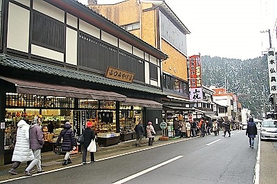 ![]() 門前町に戻り土産物店へ(ここでも倒れた・・・昨日を入れ3人目) 近くの土産物屋で、福井名物「羽二重餅」の試食と甘ったるい生姜湯で胸焼け・・・バスが心配でした |