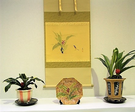 ![]() 「おもと」コーナー 万年青(おもと)は日本で古くから、主に青々とした葉を観賞する目的で育成されてきた植物です。 |