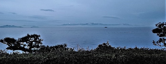 ![]() 琵琶湖を挟んだ比良山地に雲海が・・・ |
